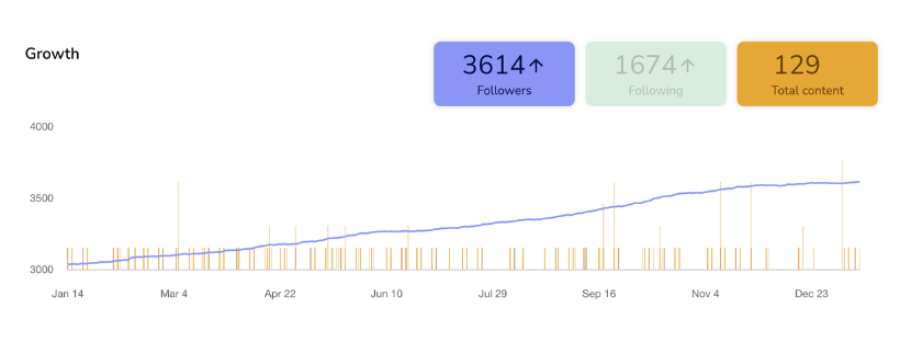 + Gained 3,614 followers organically